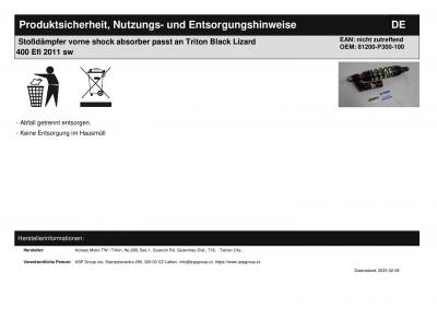 Titel: | Stoßdämpfer vorne shock absorber passt an Triton Black Lizard 400 Efi 2011 sw |