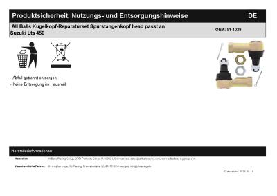 | Titel: | All Balls Kugelkopf-Reparaturset Spurstangenkopf head passt an Suzuki Lta 450 |