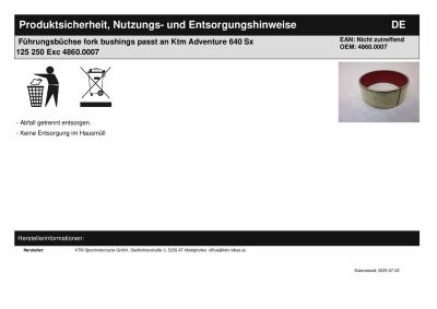 Titel: | Führungsbüchse fork bushings passt an Ktm Adventure 640 Sx 125 250 Exc 4860.0007 |