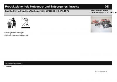 Titel: | Gabelfedern fork springs WpSuspension WPR 209.413.472 d4.75 |