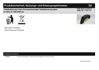Titel: | Radabdeckung hinten Kennzeichenträger Radabdeckung passt an Bmw R 1200 2003 sw |