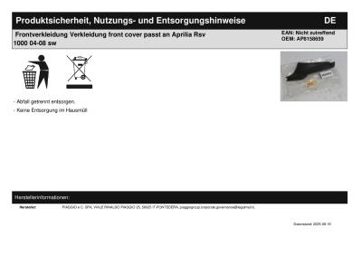 | Titel: | Frontverkleidung Verkleidung front cover passt an Aprilia Rsv 1000 04-08 sw |