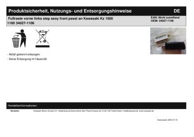 | Titel: | Fußraste vorne links step assy front passt an Kawasaki Kz 1000 1100 34027-1106 |