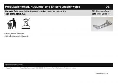| Titel: | Fußrastenhalter footrest bracket passt an Honda Vtr 1000 50750-MBB-D40 |