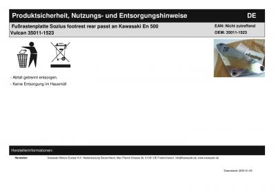 | Titel: | Fußrastenplatte Sozius footrest rear passt an Kawasaki En 500 Vulcan 35011-1523 |