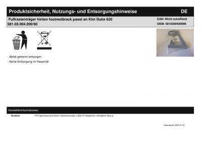 | Titel: | Fußrastenträger hinten footrestbrack passt an Ktm Duke 620 581.03.004.200/90 |