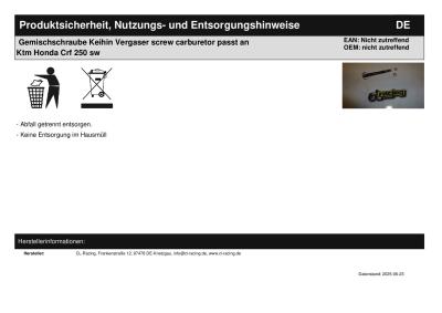 | Titel: | Gemischschraube Keihin Vergaser screw carburetor passt an Ktm Honda Crf 250 sw |