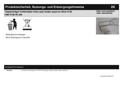 | Titel: | Gepäckträger Kofferhalter links case holder passt an Bmw R 65 1985 R 80 Rt silb |