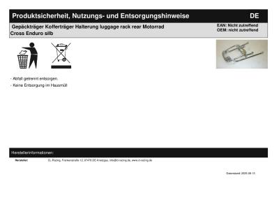 | Titel: | Gepäckträger Kofferträger Halterung luggage rack rear Motorrad Cross Enduro silb |