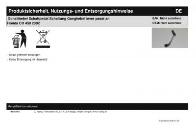Titel: | Schalthebel Schaltpedal Schaltung Ganghebel lever passt an Honda Crf 450 2002 |
