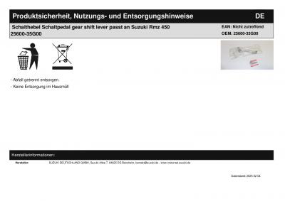 Titel: | Schalthebel Schaltpedal gear shift lever passt an Suzuki Rmz 450 25600-35G00 |
