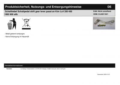 Titel: | Schalthebel Schaltpedal shift gear lever passt an Ktm Lc4 350 400 1992 600 silb |