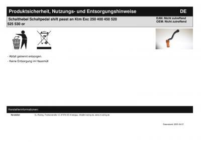 Titel: | Schalthebel Schaltpedal shift passt an Ktm Exc 250 400 450 520 525 530 or |