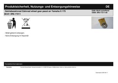 Titel: | Getriebezahnrad Zahnrad wheel gear passt an Yamaha It 175 80-81 3R6-17211 |