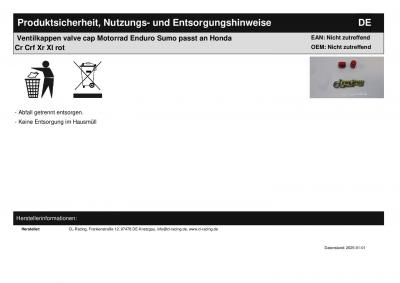 Titel: | Ventilkappen valve cap Motorrad Enduro Sumo passt an Honda Cr Crf Xr Xl rot |