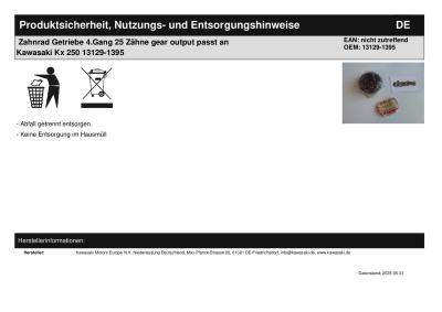 Titel: | Zahnrad Getriebe 4.Gang 25 Zähne gear output passt an Kawasaki Kx 250 13129-1395 |