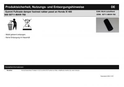 | Titel: | Gummi Fußraste damper footrest rubber passt an Honda Xl 400 600 50711-MAW-760 |