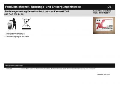 | Titel: | Bedienungsanleitung Fahrerhandbuch passt an Kawasaki Zz-R 600 Zz-R 500 Zx 60 |
