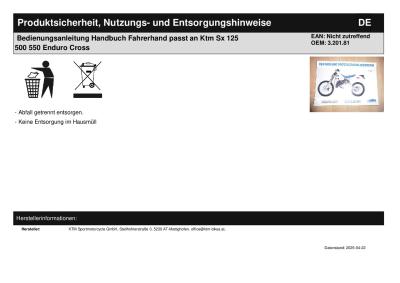 | Titel: | Bedienungsanleitung Handbuch Fahrerhand passt an Ktm Sx 125 500 550 Enduro Cross |