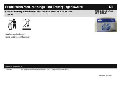 | Titel: | Ersatzteilkatalog Handbuch Buch Ersatzteil passt an Ktm Sx 250 3.208.86 |