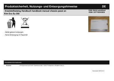 | Titel: | Ersatzteilkatalog Handbuch handbook manual chassis passt an Ktm Exc Eu 250 |