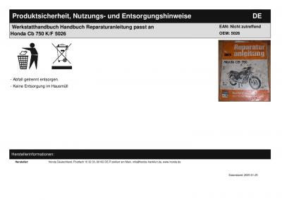 | Titel: | Werkstatthandbuch Handbuch Reparaturanleitung passt an Honda Cb 750 K/F 5026 |