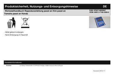 | Titel: | Werkstatthandbuch Reparaturanleitung passt an Ktm passt an Yamaha passt an Honda |