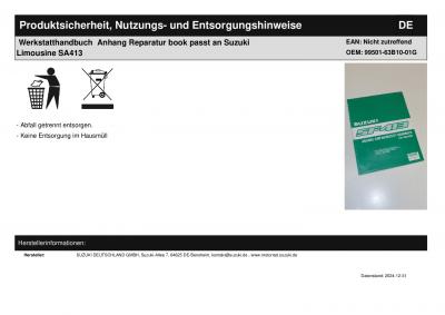 | Titel: | Werkstatthandbuch Anhang Reparatur book passt an Suzuki Limousine SA413 |