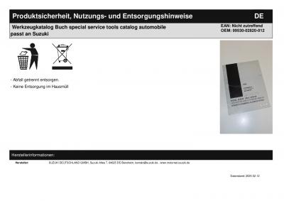 | Titel: | Werkzeugkatalog Buch special service tools catalog automobile passt an Suzuki |