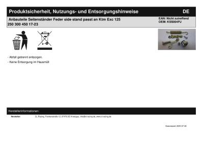 | Titel: | Anbauteile Seitenständer Feder side stand passt an Ktm Exc 125 250 300 450 17-23 |