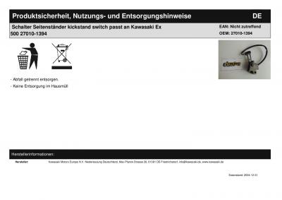 | Titel: | Schalter Seitenständer kickstand switch passt an Kawasaki Ex 500 27010-1394 |