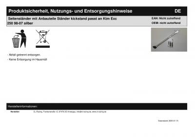 | Titel: | Seitenständer mit Anbauteile Ständer kickstand passt an Ktm Exc 250 98-07 silber |
