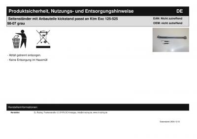 | Titel: | Seitenständer mit Anbauteile kickstand passt an Ktm Exc 125-525 98-07 grau |