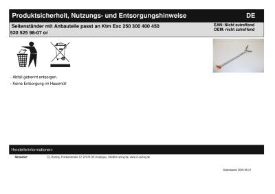 | Titel: | Seitenständer mit Anbauteile passt an Ktm Exc 250 300 400 450 520 525 98-07 or |