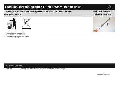 | Titel: | Seitenständer mit Anbauteilen passt an Ktm Exc 125 200 250 300 400 08-16 silb-or |