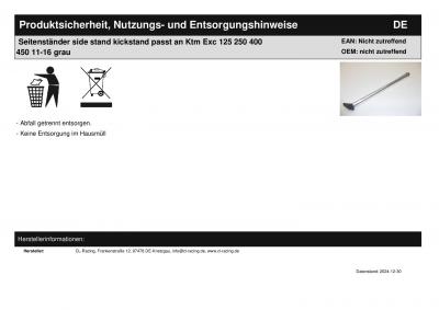 | Titel: | Seitenständer side stand kickstand passt an Ktm Exc 125 250 400 450 11-16 grau |