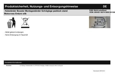 | Titel: | Hubständer Booster Montageständer Schräglage paddock stand Motocross Enduro silb |