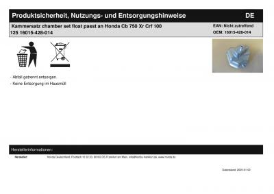 Kammersatz chamber set float passt an Honda Cb 750 Xr Crf 100 125 16015-428-014