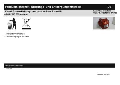 | Titel: | Kanzel Frontverkleidung cover passt an Bmw R 1100 Rt 46.63-2313 683 weinrot |