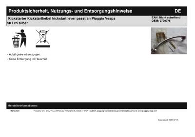Titel: | Kickstarter Kickstarthebel kickstart lever passt an Piaggio Vespa 50 Lrn silber |