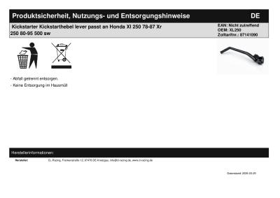 | Titel: | Kickstarter Kickstarthebel lever passt an Honda Xl 250 78-87 Xr 250 80-95 500 sw |