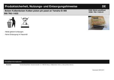 Titel: | Bolzen Kolbenbolzen Kolben piston pin passt an Yamaha Et 900 950 7N2-11633 |