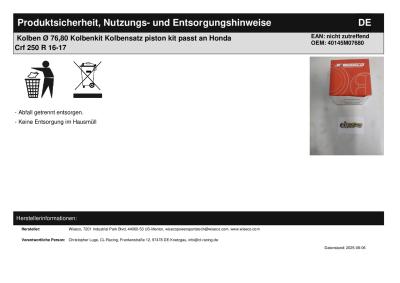 Titel: | Kolben Ø 76,80 Kolbenkit Kolbensatz piston kit passt an Honda Crf 250 R 16-17 |