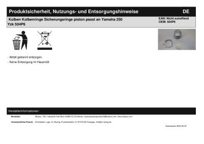 Titel: | Kolben Kolbenringe Sicherungsringe piston passt an Yamaha 250 Yzk 504P6 |