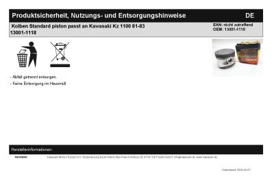 | Titel: | Kolben Standard piston passt an Kawasaki Kz 1100 81-83 13001-1118 |