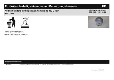 Titel: | Kolben Standard piston passt an Yamaha Rd 350 U 1974 360-11631 |