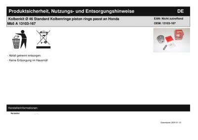 Titel: | Kolbenkit Ø 46 Standard Kolbenringe piston rings passt an Honda Mb5 A 13103-167 |