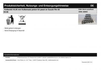 Kolbenkit 44,46 mm Kolbensatz piston kit passt an Suzuki Rm 65 03-06