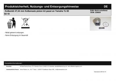 Kolbenkit 47,44 mm Kolbensatz piston kit passt an Yamaha Yz 85 02-18