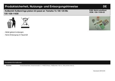 Titel: | Kolbenkit Kolbenringe piston kit passt an Yamaha Yz 100 125 Mx 125 1G8-11630 |
